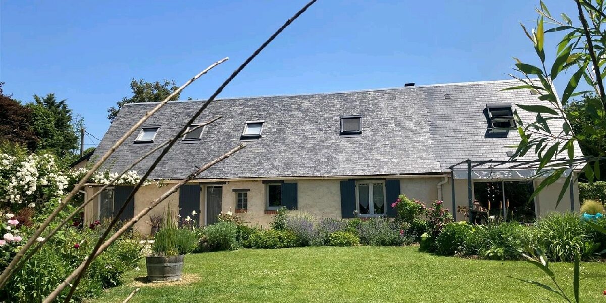 Maison dhabitation type longère comprenant cuisine aménagée et équipée, vaste séjour-salle à manger, salle deau, salon en extension (de 2017). Double accès étage donnant sur palier, 2 chambres, salle de bains par le premier accès et chambre par le second accès. Le tout sur 918 m² de terrain paysagé et clos. Cadre idyllique coup de coeur assuré.