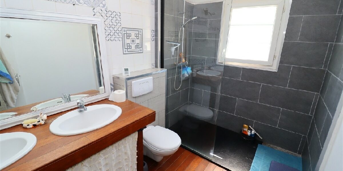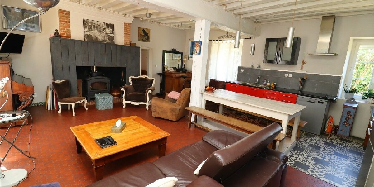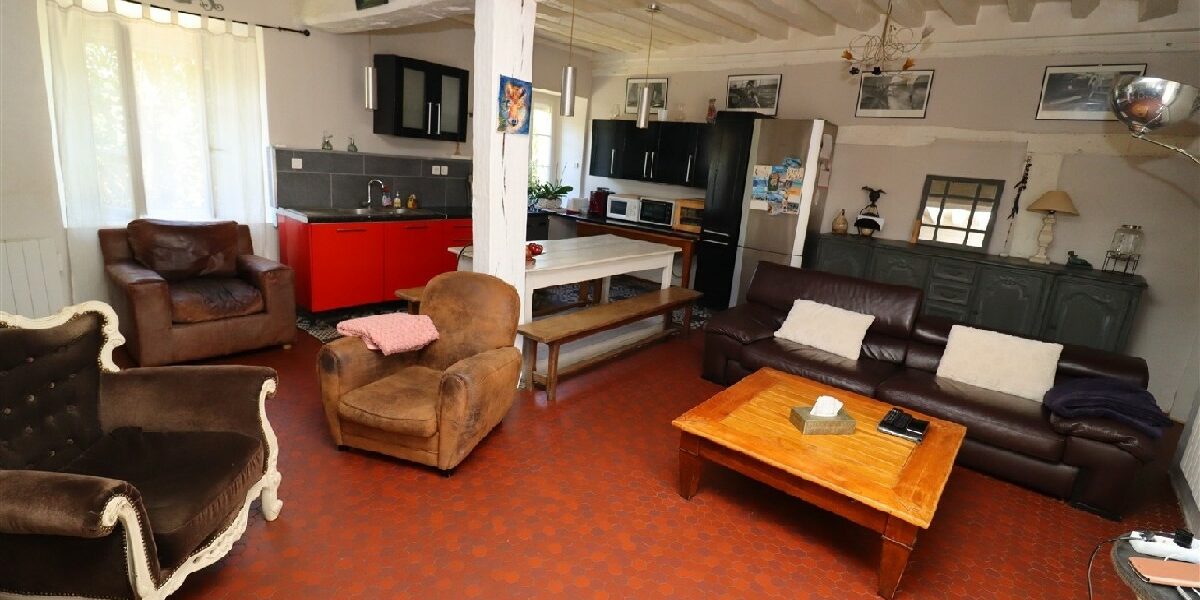 Charmante longère entièrement rénovée comprenant : entrée, cuisine aménagée et équipée ouverte sur un vaste séjour, suite parentale avec salle d’eau et wc, buanderie.