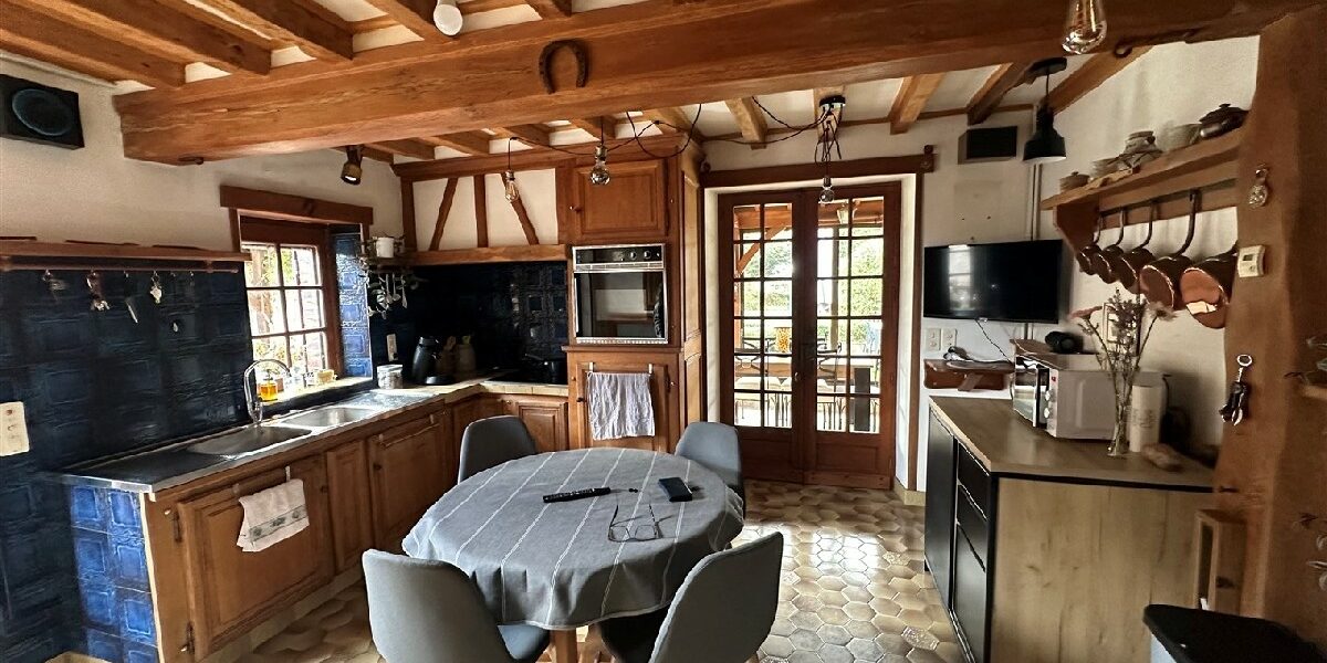 Une superbe maison d’habitation type longère comprenant en Rez-de-Chaussée : vaste séjour cathédrale avec cheminée, second salon, cuisine aménagée, véranda, salle d’eau avec WC, chaufferie. A l’étage : palier desservant 2 chambres, dégagement, WC, salle de bains. Nombreux rangements. Dépendance à l’extérieur. Bûcher. Le tout sur 1 388m² de terrain clos et arboré.