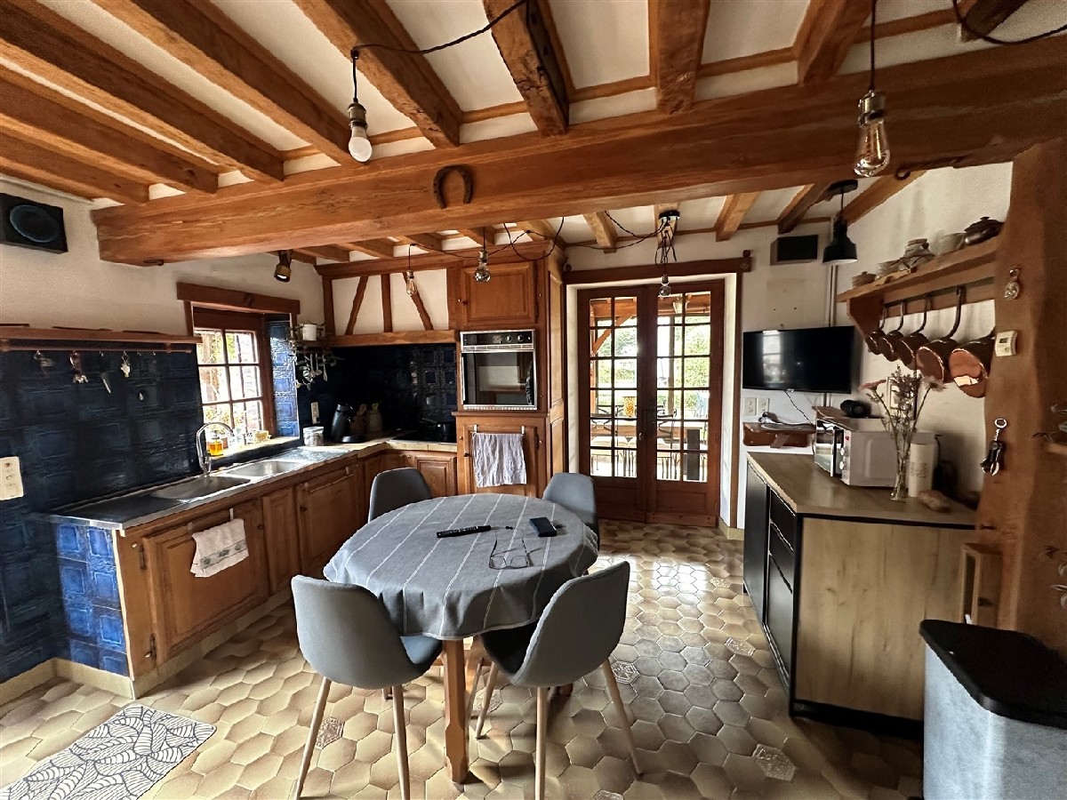 Une superbe maison d’habitation type longère comprenant en Rez-de-Chaussée : vaste séjour cathédrale avec cheminée, second salon, cuisine aménagée, véranda, salle d’eau avec WC, chaufferie. A l’étage : palier desservant 2 chambres, dégagement, WC, salle de bains. Nombreux rangements. Dépendance à l’extérieur. Bûcher. Le tout sur 1 388m² de terrain clos et arboré.