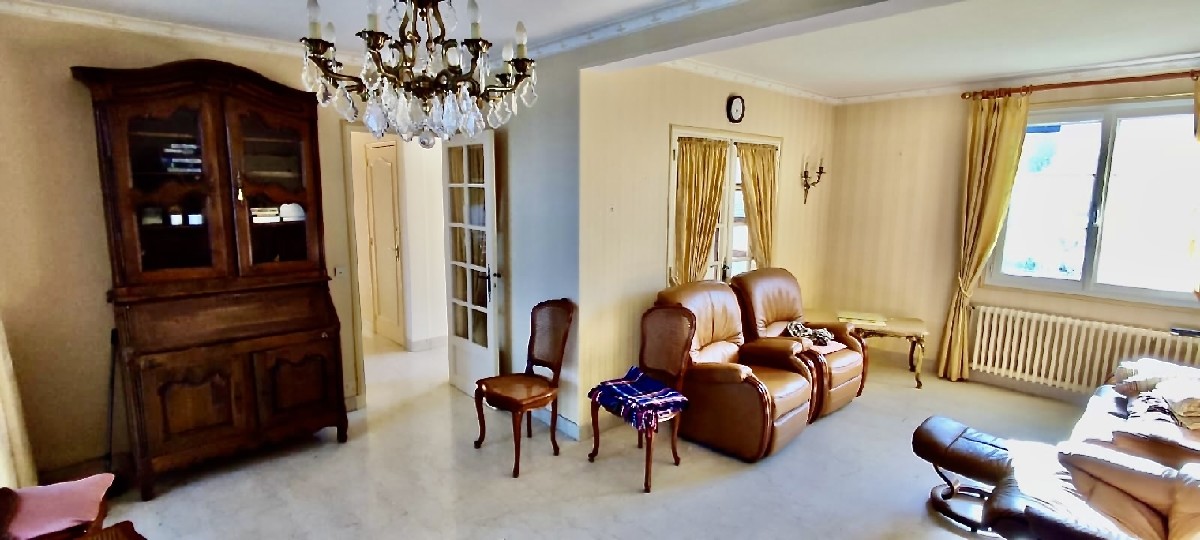 Chauffage fioul, menuiseries en double vitrage PVC, raccordé à l’assainissement collectif, sous sol total de 95 m2, dépendance/garage.