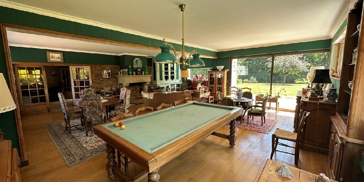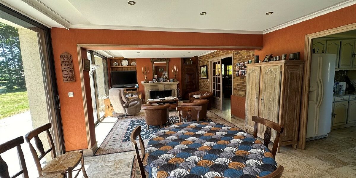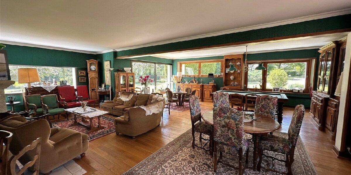 Superbe maison darchitecte de plus de 330 m² habitable offrant en Rez-de-Chaussée : vaste sas dentrée, cuisine A/E, salle à manger avec cheminée ouverte, vaste salon-séjour(plus de 70m²) avec cheminée ouverte, bureau, cabinet de toilettes, buanderie, suite parentale. A létage : pièce palière donnant sur 3 suites parentales. Terrasse. Balcons. Dépendance. Cette propriété s’étend sur un parc arboré sans aucun vis-à-vis de 15 960 m². RARE SUR LE SECTEUR !