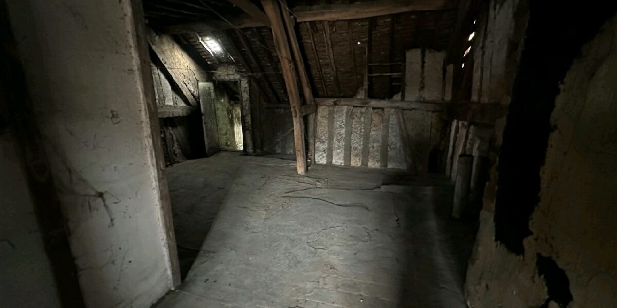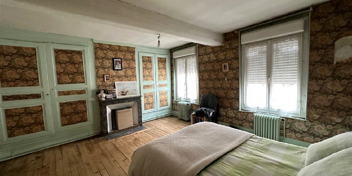 A l’étage : palier, 2 chambres, bureau, salle d’eau/wc. Au second : grenier / plateau de 50 m²