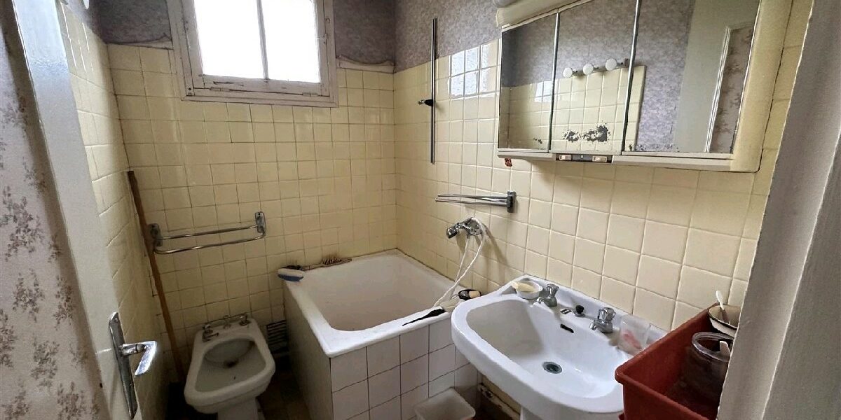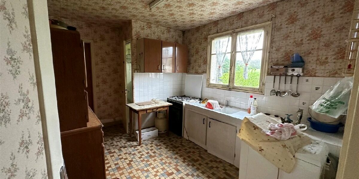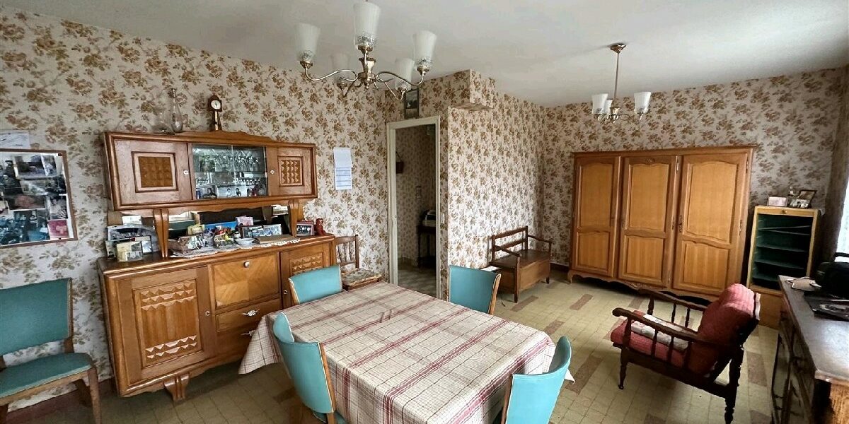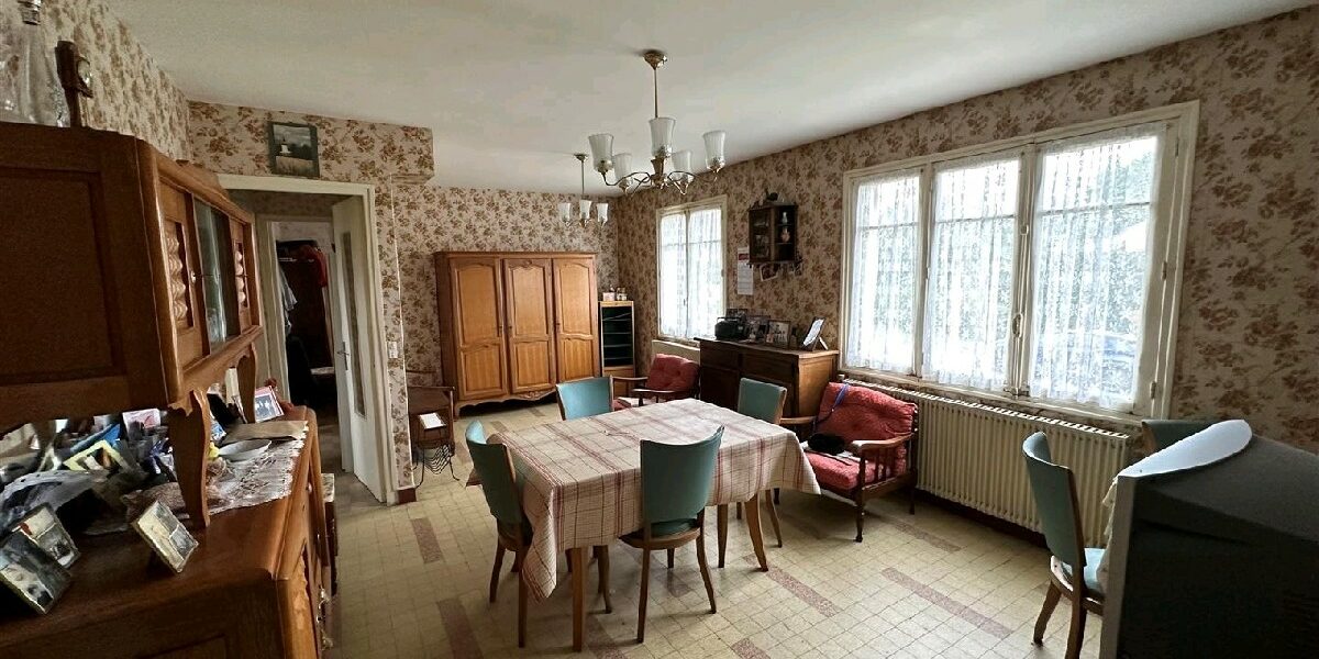 Pavillon à rafraichir comprenant : entrée, séjour-salon, deux chambres, cuisine. Sous-sol total divisé en garage, atelier, chaufferie. Le pavillon est mitoyen par un coté. Le tout sur 916 m² de terrain clos.