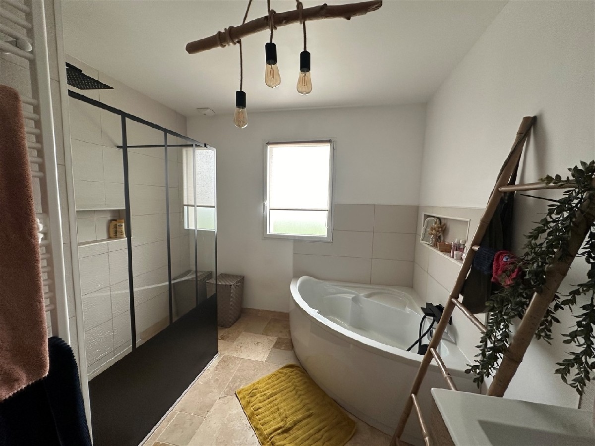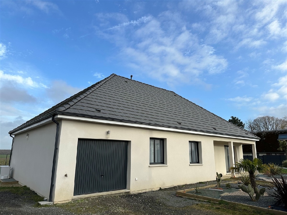 A QUELQUES MINUTES DE COURVILLE SUR EURE ! Une maison à usage dhabitation de 2023 en parfait état et de plain-pied comprenant entrée sur salon-séjour, cuisine aménagée et partiellement équipée ouverte, dégagement, 3 chambres, salle de bains, WC. Garage attenant. Le tout sur 1 197m² de terrain clos et arboré. POSEZ VOS VALISES !