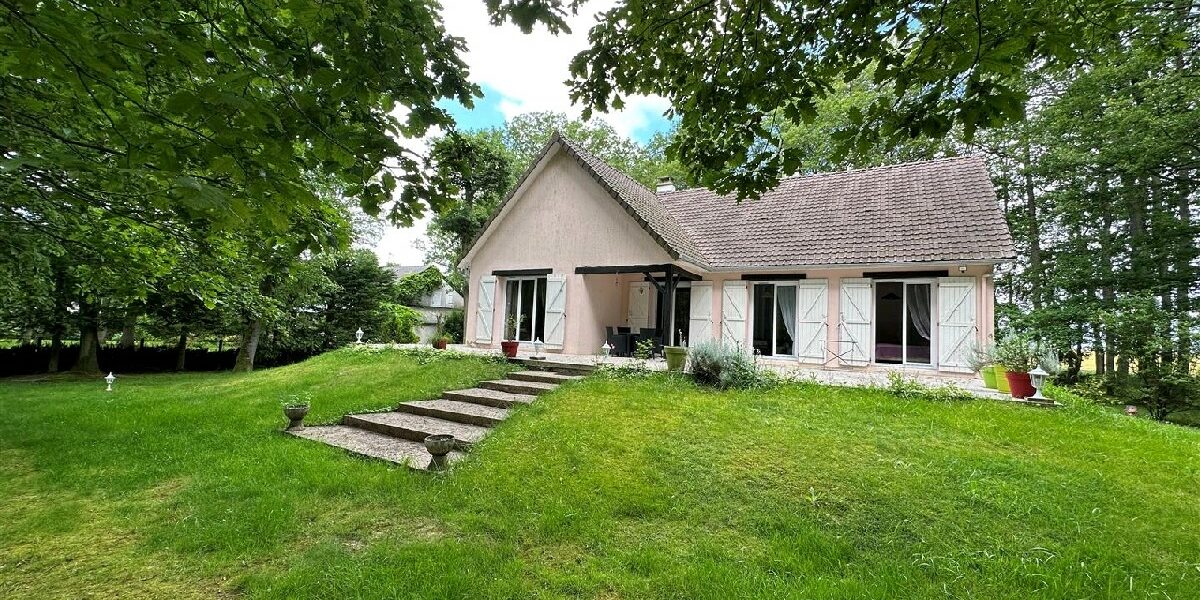 Une maison à usage d’habitation de plain-pied située dans un clos privé propice au repos et à l’évasion comprenant : Au Rez-de-Chaussée : entrée, cuisine aménagée et équipée, séjour avec cheminée, WC, dégagement, trois chambres (dont deux avec rangements), salle d’eau. Sous-sol total divisé en garage, atelier, cave, chaufferie et buanderie. Le tout sur plus de 2500 m² de terrain clos ! CADRE VERDOYANT ET ARBORE SUR L’ENSEMBLE DU CLOS !