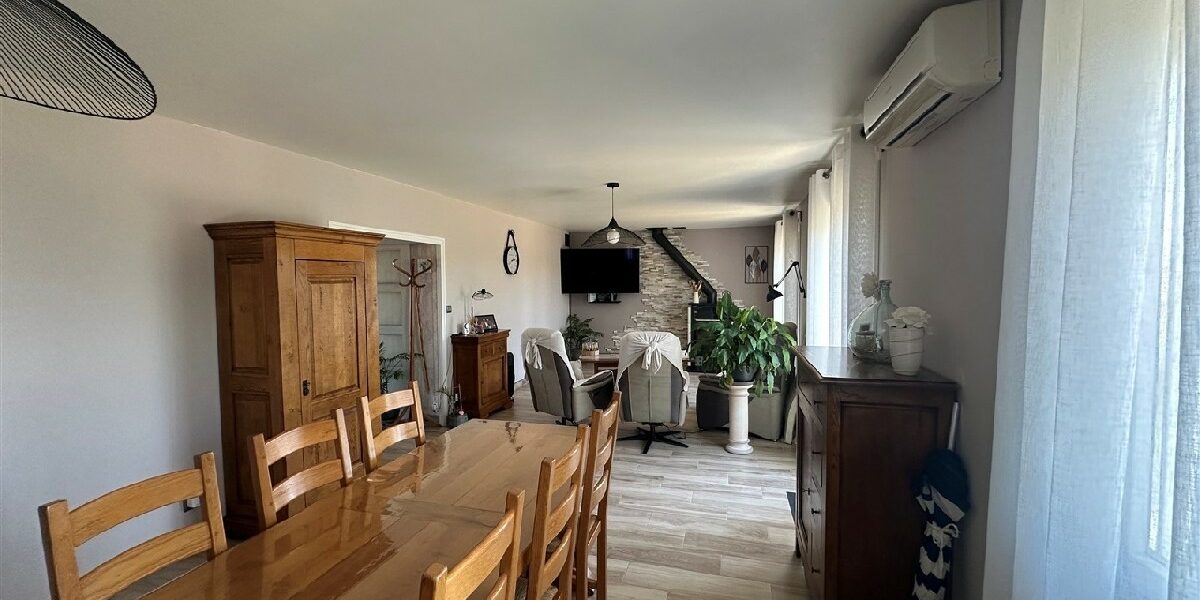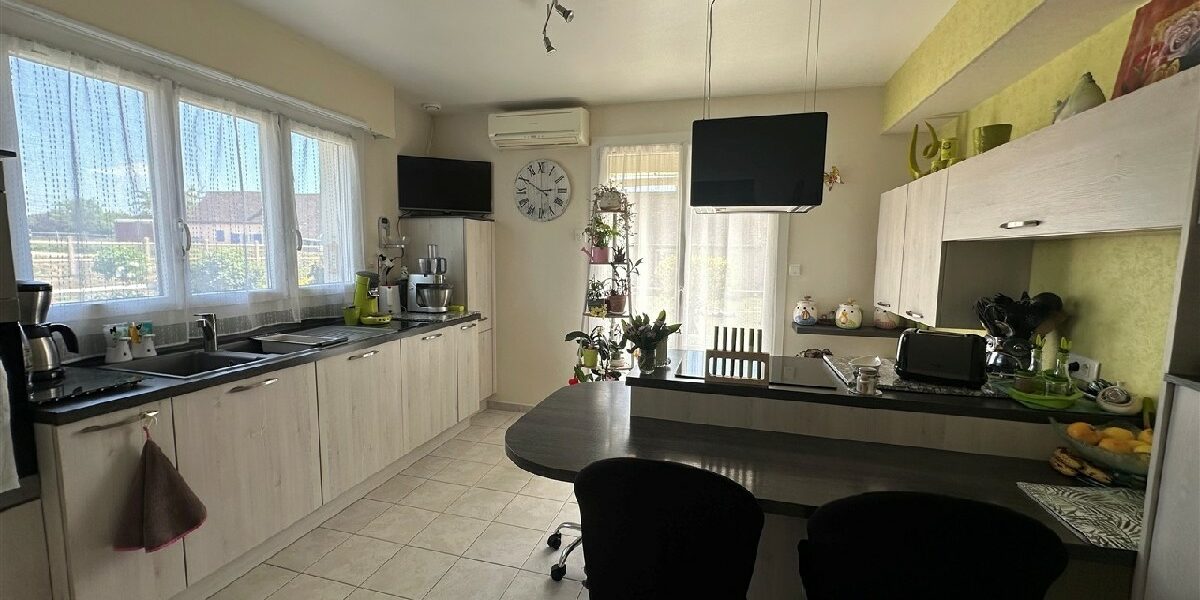 Une maison à usage d’habitation en parfait état, comprenant : Au rez-de-chaussée : entrée avec placards, cuisine aménagée et équipée avec accès terrasse, séjour/salon avec poêle à bois (godin), couloir avec placards desservant salle d’eau à l’italienne, deux chambres avec placards, WC avec lave mains.