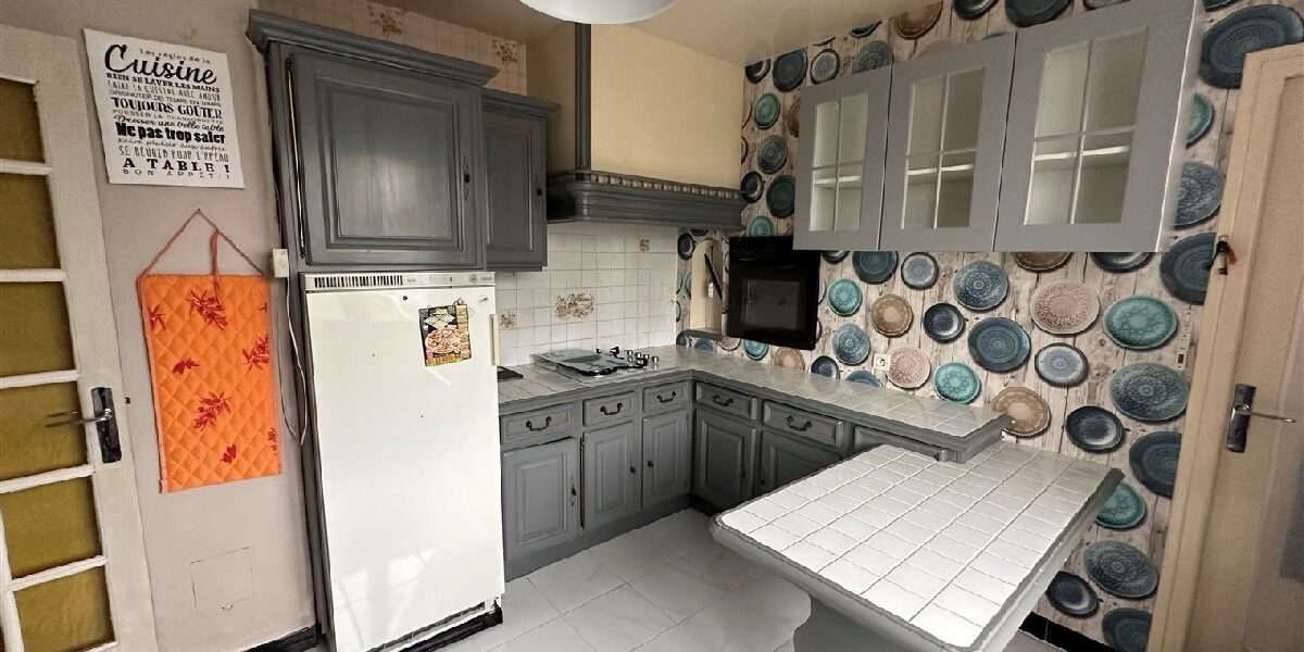 Maison d’habitation édifiée sur sous sol total comprenant entrée avec dégagement et placards, salon-séjour, cuisine A/E, 2 chambres, salle de bains, WC.