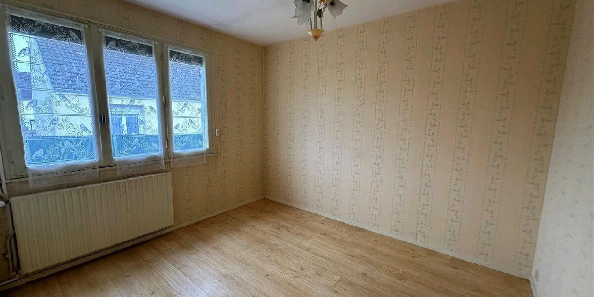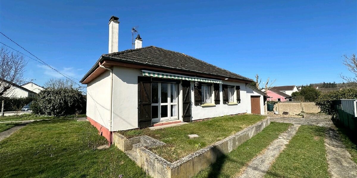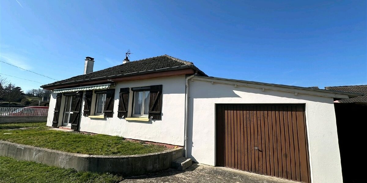 Une maison dhabitation de plain-pied comprenant : entrée, cuisine, cellier/buanderie, salon-séjour avec cheminée, dégagement avec placards, deux chambres, salle deau, WC. Garage attenant. Le tout sur 476m² de terrain clos.