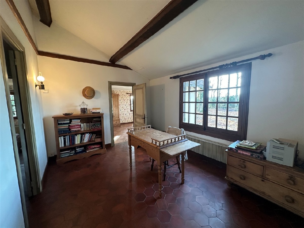 Amoureux de la nature cette propriété est faite pour vous . Une magnifique propriété à usage d’habitation comprenant entrée, vaste séjour-salon (cathédrale) avec cheminée (foyer ouvert), bureau, deux chambres, dégagement, salle d’eau, WC, grande cuisine, arrière cuisine / cellier. Mezzanine donnant sur le séjour-salon. Superbe parcelle de plus de 5 800m² de terrain boisé. CADRE IDYLLIQUE !