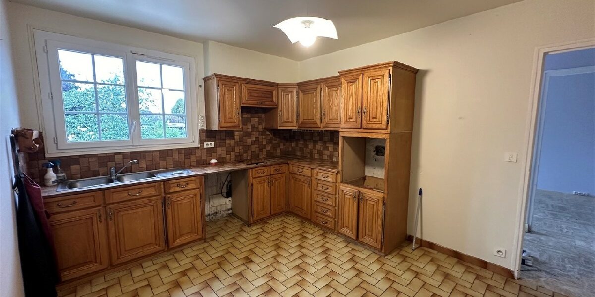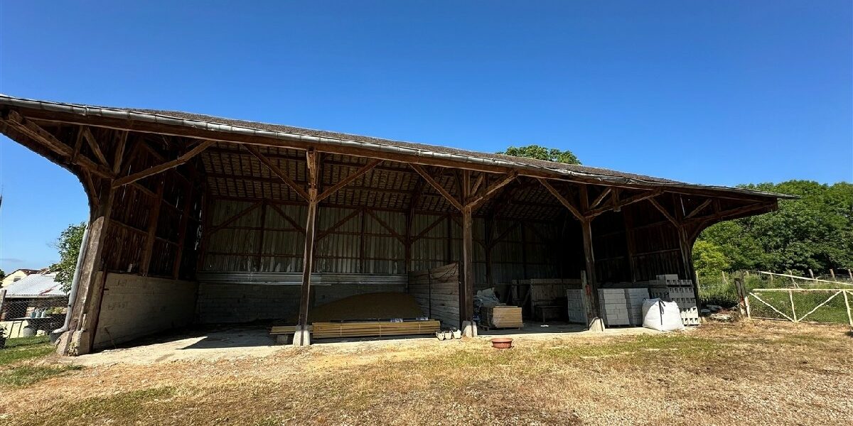 Maison d’habitation comprenant en Rez-de-Chaussée : entrée, cuisine A/E, bureau/chambre, séjour salon avec cheminée (foyer ouvert), salle d’eau, WC. A l’étage (possibilité de conserver un monte escalier stannah) palier desservant 4 chambres, salle d’eau, dégagement, WC. Sous-sol total, hangar semi ouvert d’environ 220 m² courvert (20×11), Grange. Dépendances de jardin. Le tout sur environ 4 000m² de terrain arboré. Ecole primaire, épicerie et transports sur la commune !